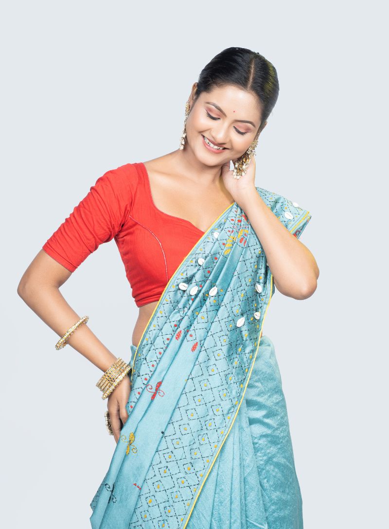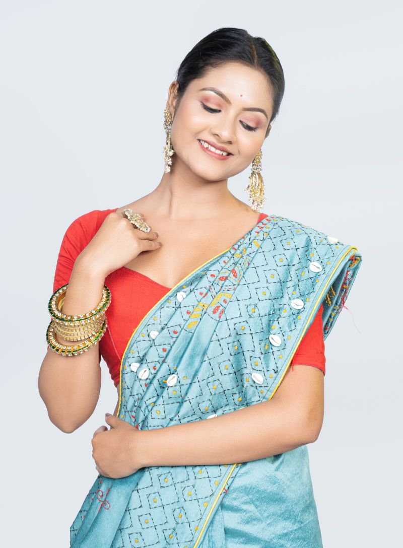 Style it with ethnic jewelry and a matching blouse to create a look that’s bold, elegant, and rooted in heritage.