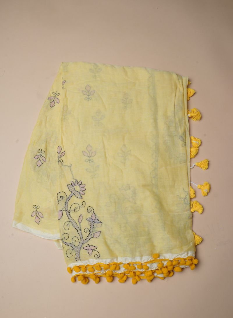 Brighten your ethnic wardrobe with this elegant Mul Cotton saree in a rich mustard yellow shade, beautifully adorned with delicate embroidery work. Crafted from ultra-soft mul cotton, the saree offers a feather-light feel, excellent breathability, and a comfortable drape—perfect for all-day wear.